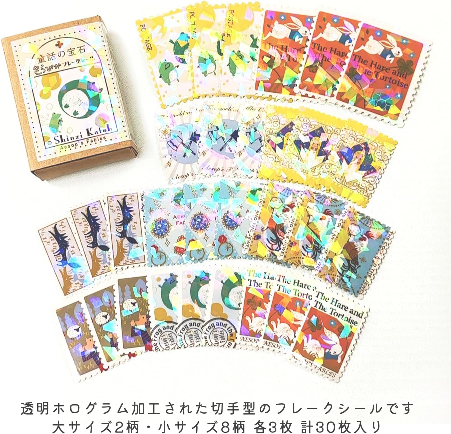 This series of flake stickers are inspired by Aesop's Fables and Andersen's Fairy Tales. Perfect for adding a touch of whimsy to your crafts, notebooks, and journals. It is beautifully packaged, making it an ideal gift for sticker enthusiasts or anyone who loves unique stationery.