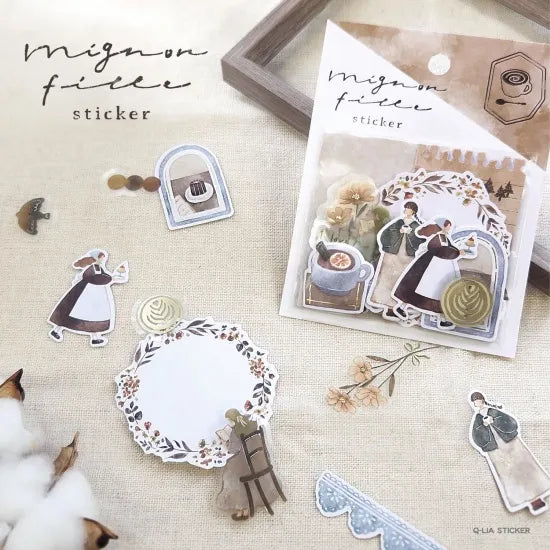Add a touch of charm to your belongings with this delightful pack of gold foil stickers of Mignon Fille. In this series of flake stickers, it has included different themes and each sticker is delicately drawn with vintage-style illustrations. Perfect for personalizing your laptop, or notebook, gift wrapping, journaling and scrapbooking.