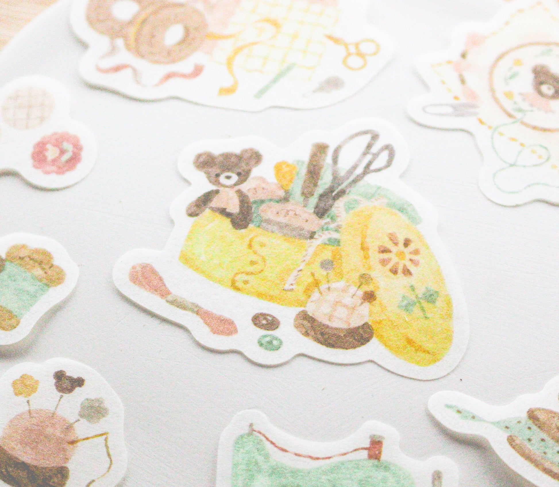 Brighten up your belongings with our delightful watercolour-themed stickers. This series of flake stickers includes different items such as coffee, milk, and sewing machine etc. These high-quality stickers are ideal for journaling, gift wrapping, scrapbooking or art creations.